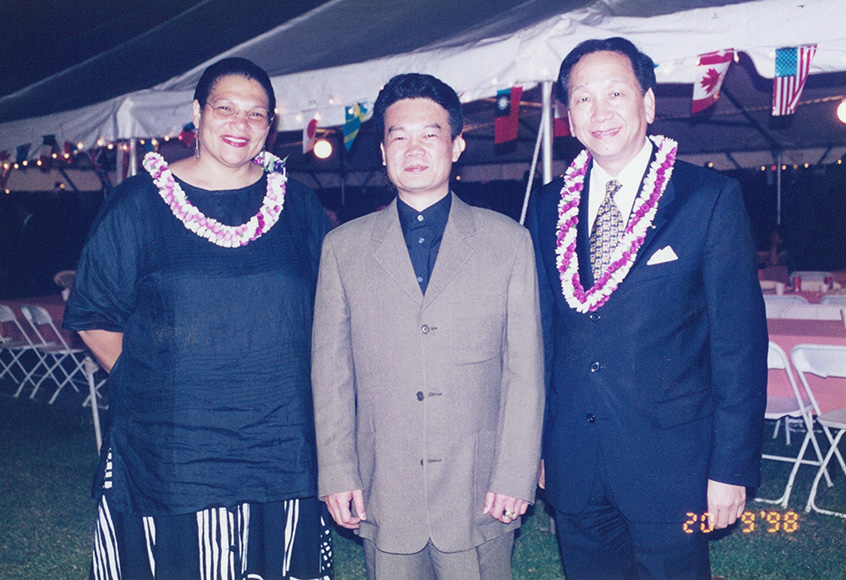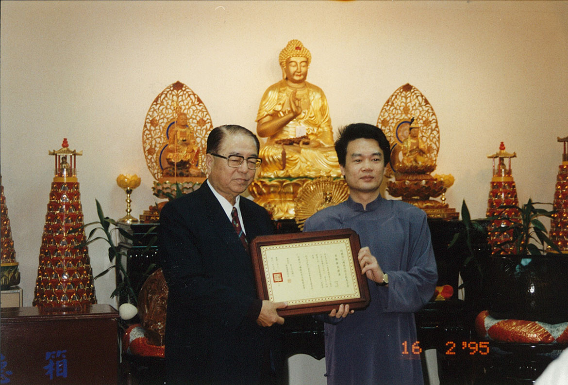 總統府資政林洋港居士親臨本會,接受佛乘世界文教基金會名譽會長榮銜。