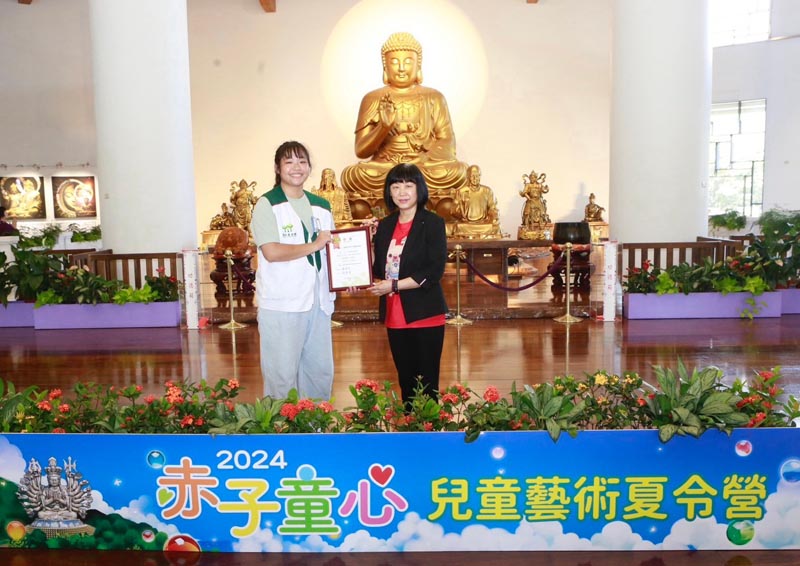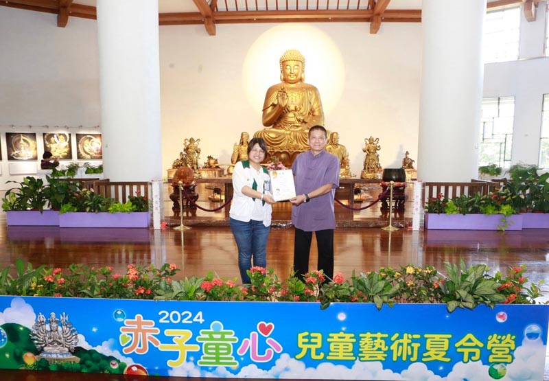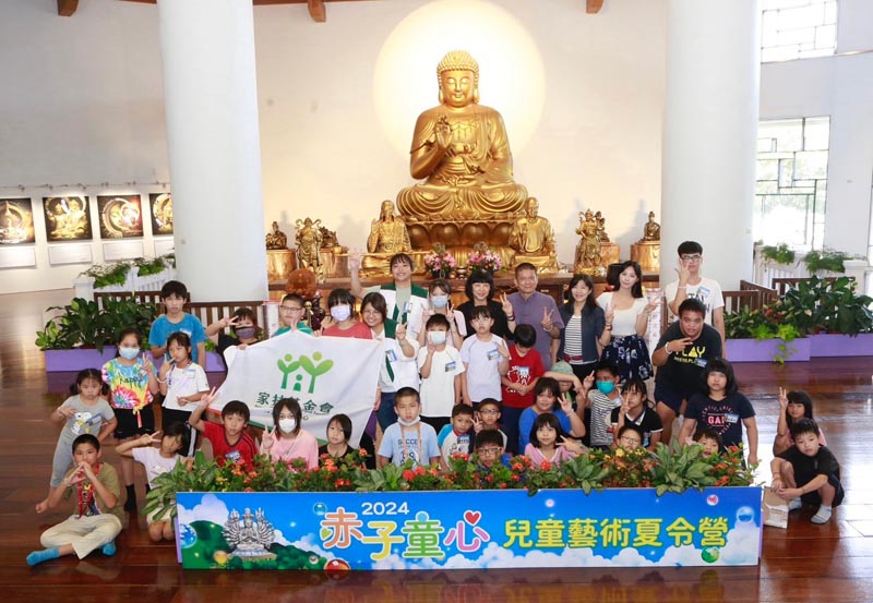 「2024赤子童心藝術夏令營」,於8月4日於淡水地標──「千手千眼觀世音菩薩」聖像舉辦,將觀音慈悲的心量融入活動,讓家扶基金會的小朋友體驗一場充滿創新、刺激、好玩、充滿回憶的夏令營。